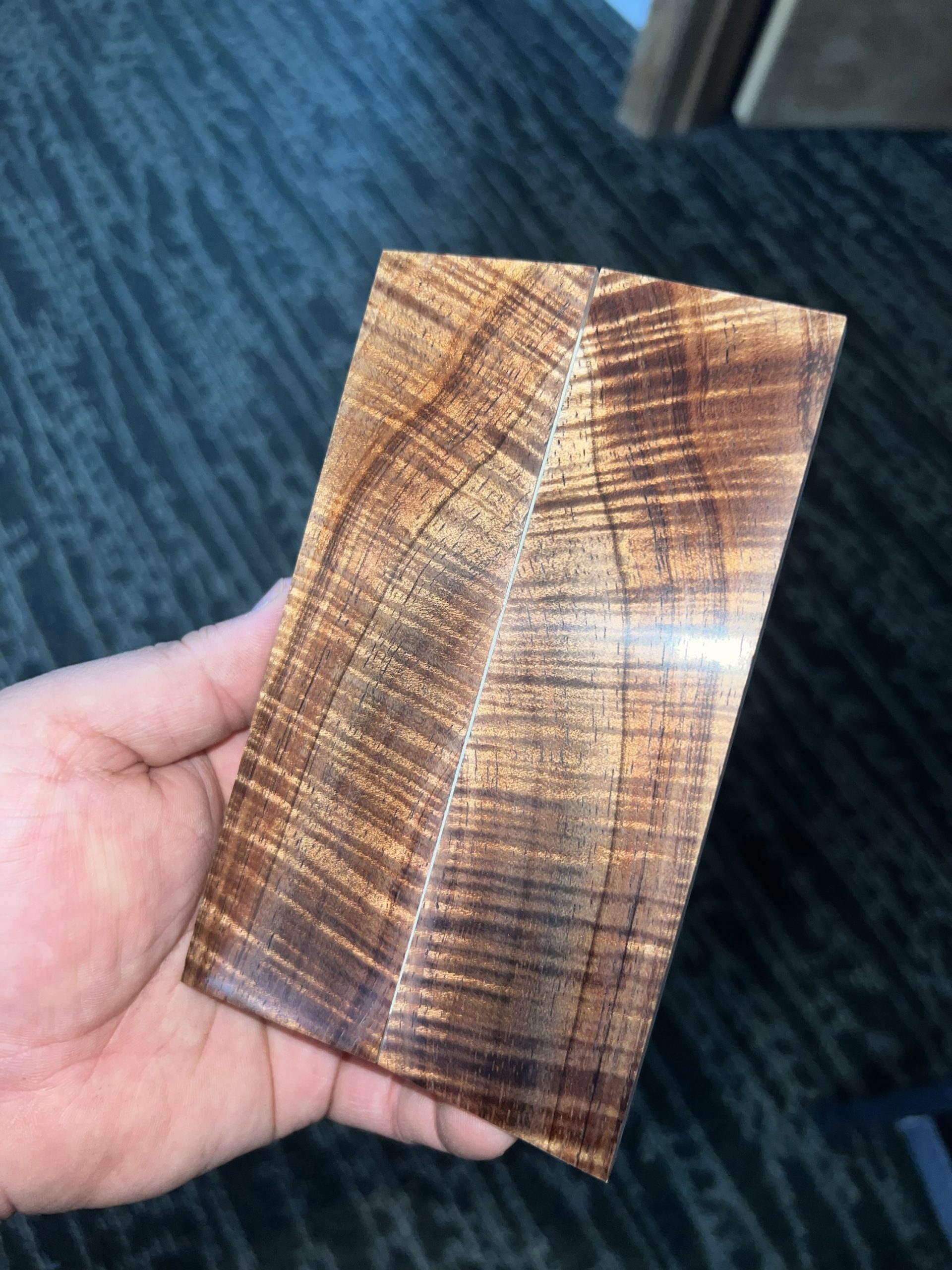 Awesome looking Hawaiian curly Koa scales! Professionally stabilized by K&G!! curls and chatoyance are 100% natural which is why Koa is such a prized wood. Pictures are of the exact time you will receive.