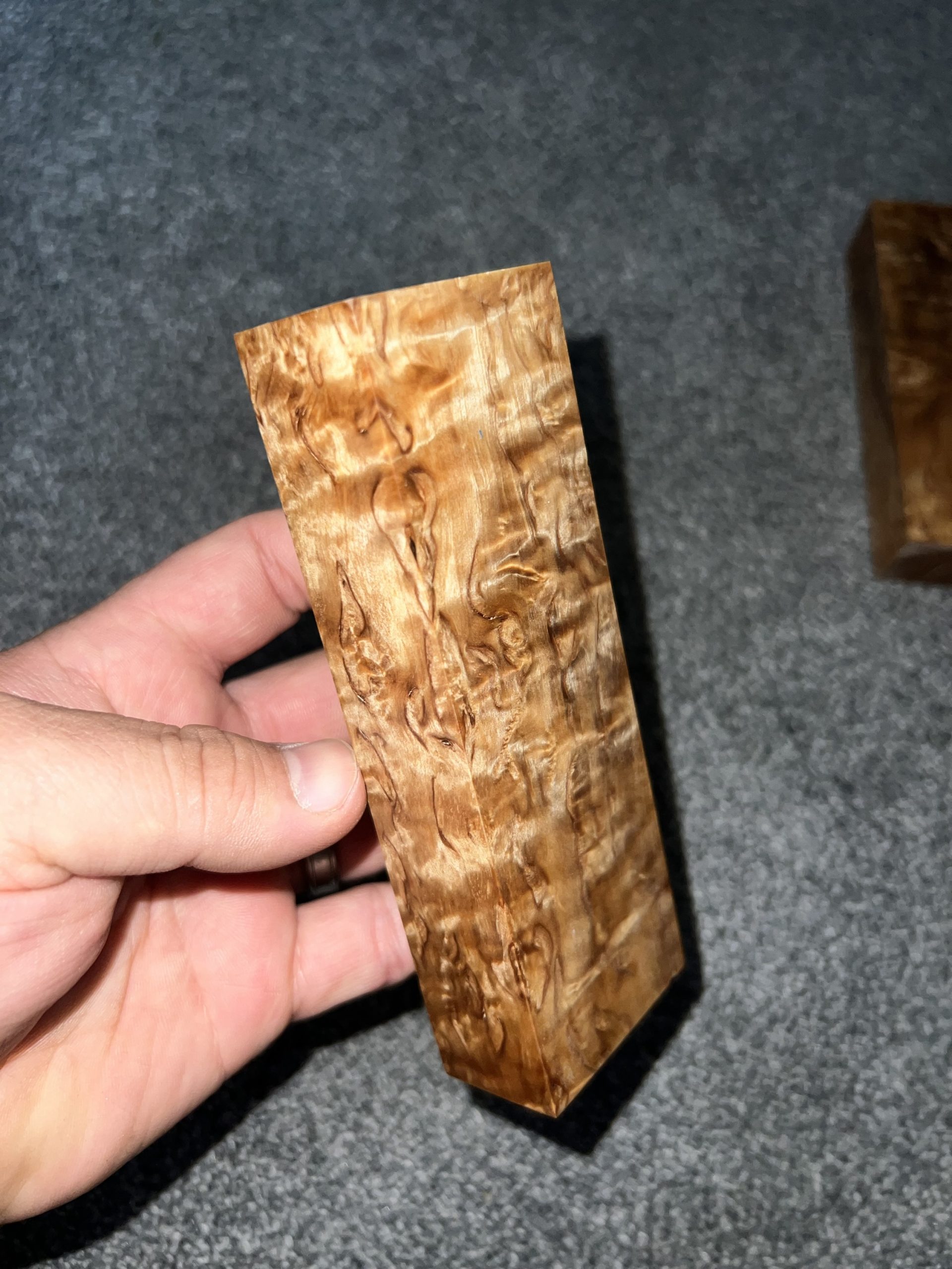 Karelian birch block! Professionally stabilized by K&G!! older stock from Russia before everything went to sh!t!! Pictures are of the exact item you will receive! Size is 5-1/2 x 1-3/4+ x 1!