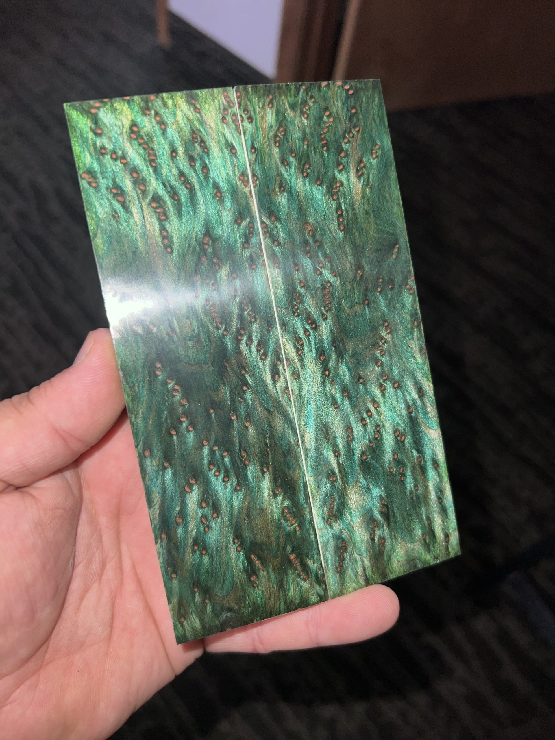Some of the best old growth redwood lace burl scales left!! All Professionally dyed and stabilized by K&G. Pictures are of the exact item you will receive.