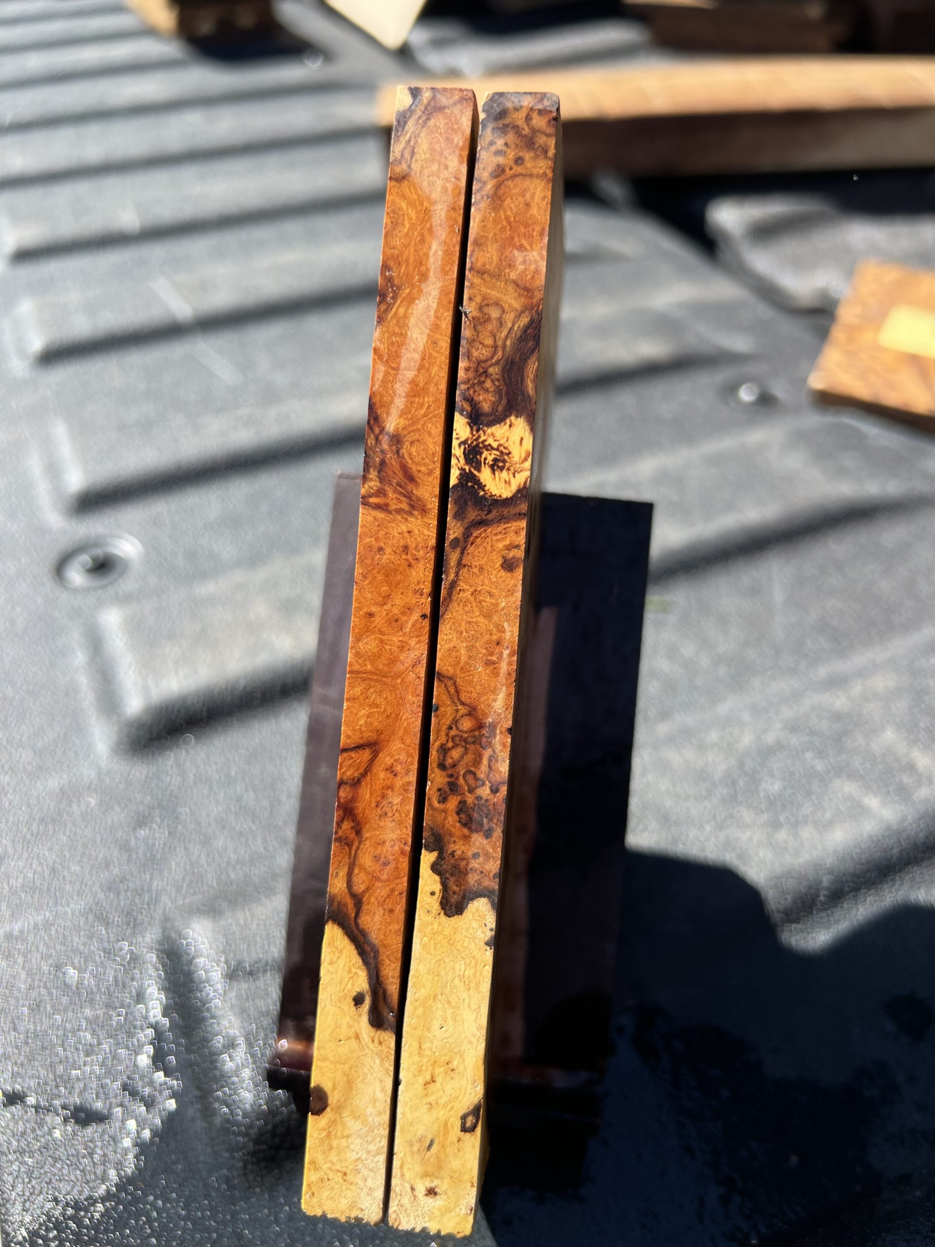 Desert ironwood burl scales! Super dense and oily and do not require stabilizing! Pictures are of the exact item you will receive. These are unpolished. Very unique cut. Burl will appear on the spine as shown.